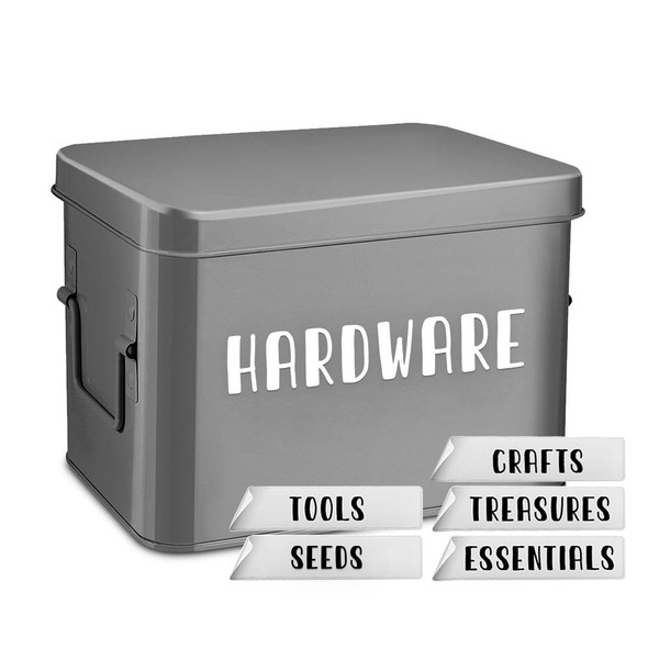 - 1x Tin Storage Box with Removable Tray, 8 Inch Seed Organizer Box and Metal Seed Holder Organizer with Hinged Lid, Toolbox Container for Crafts, Hardware, Tools, Essentials – Gray
