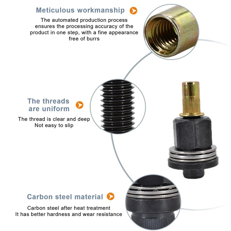- Material mix for flexibility: the pull rivet nuts set is made of high quality carbon steel, the surface is flat and smooth without burrs, the thread is clean and even under the action of force, the wire is not easy to slip off, it is rust and corrosion resistant, sturdy and durable