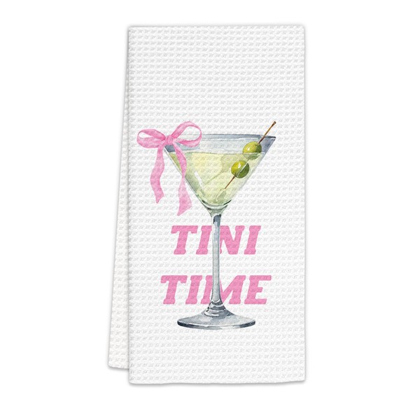 Flicy Bow Martini Decor Kitchen Towels, Dirty Martini Bar Dish Towels, Tini Time Pink Preppy Decorative Hand Towel Bar Towel for Bartender, DirtyMartini Lover Gift Home Bar Kitchen Decor(16x24lnch)
