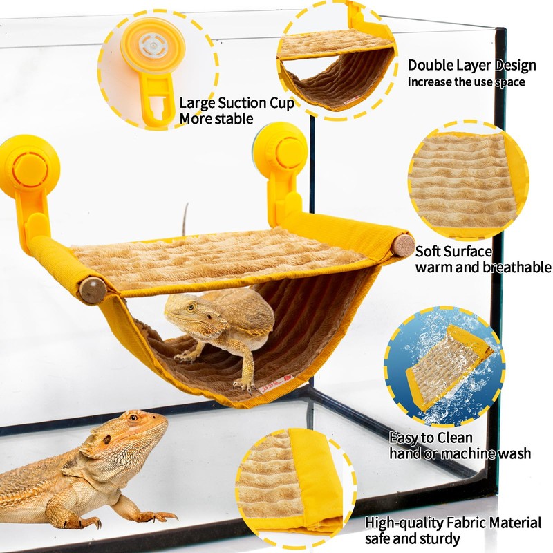 FlidRunest Bearded Dragon Hammock with Suction Cups, Soft Lizard Hammock Bed, Winter Warm House Tent, Reptile Tank Perch-Yellow