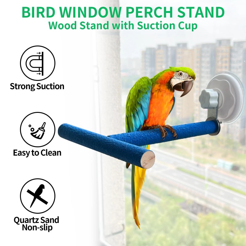 High Quality Materials: The bird window perches are made of natural wood, quartz sands surface, non-slip and safe for your bird to chew, make sure the bird's claws have a firm grip on the. Also perches for bird cages helps your bird to stimulate skill by this design.