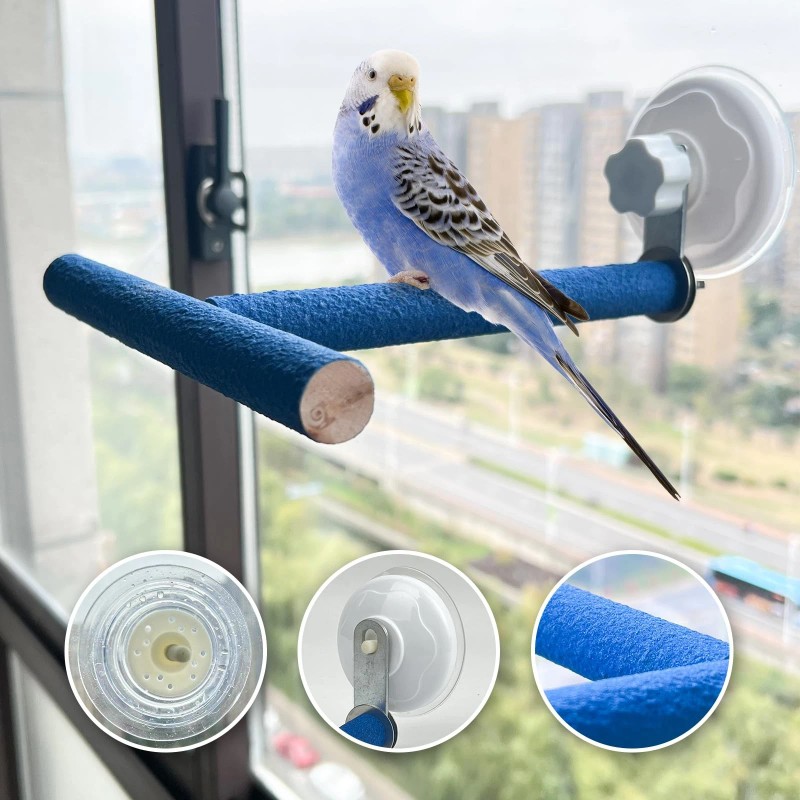 Bird Window/Bath/Car/Travel Stand Perch for Parakeet , Budgies, Budgerigars, Parrots, Canaries, Cockatiels, Parrotlets, Lovebirds, Ringnecks, Conures, Caiques, Lorikeets, Forpus, and other small and medium birds.