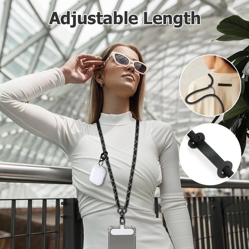 The length of the mobile phone lanyard can be adjusted at any time. You can wear it however you like - as a crossbody bag, as a necklace around your chest, or as a wristband.