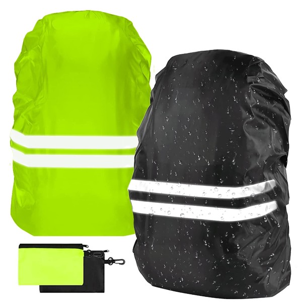 flintronic Backpack Waterproof Cover, 2 Pack Reflective Rucksack Cover, High Visibility Backpack Cover for Cycling, Running & Hiking