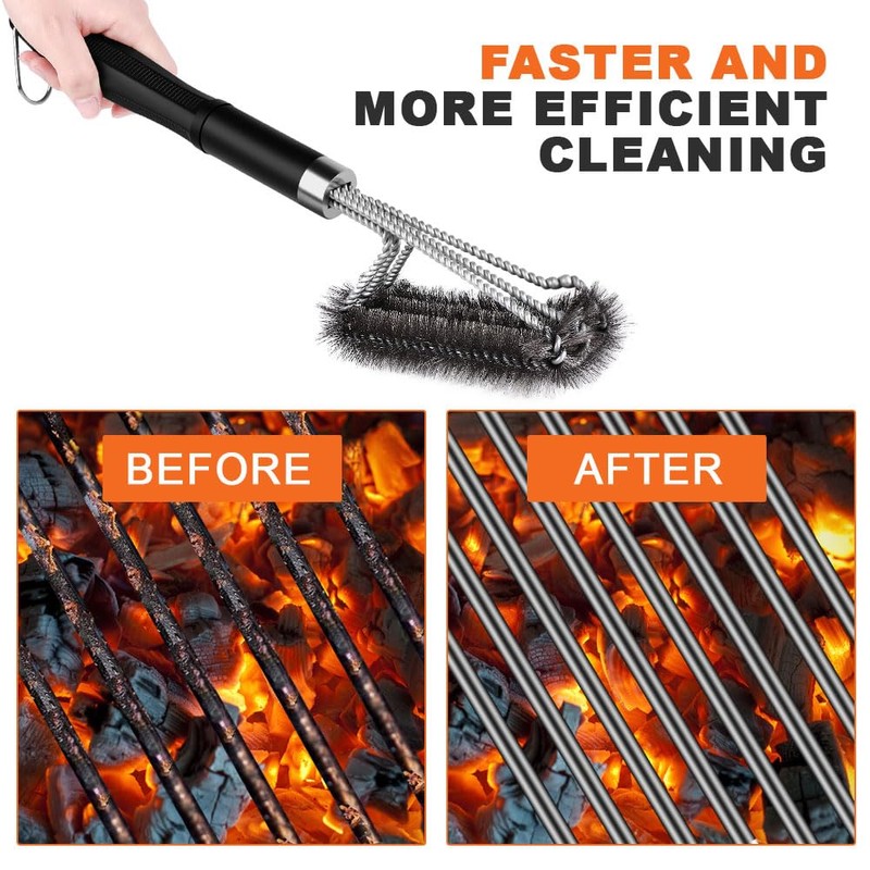 - 👍【Great Gift for BBQ Lovers】Any BBQ lover will agree that cleaning is not a pleasant experience. With this cleaning brush, your grill brush will remove 80–90% of burned grease and food debris from your grill in just a few minutes. Recommended for all BBQ lovers!
