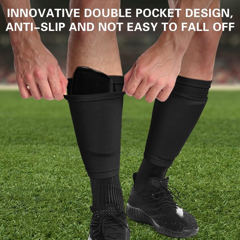 - ⚽【Non-slip sock covers】The included socks are made of breathable fabric, which is highly elastic and breathable. Simply insert the shin pads into the pocket of the sock. So the shin pads stay in place while playing without slipping, and also avoid friction between the shin pads and the skin. At the same time, it absorbs sweat and is breathable, so you can enjoy comfort during training.