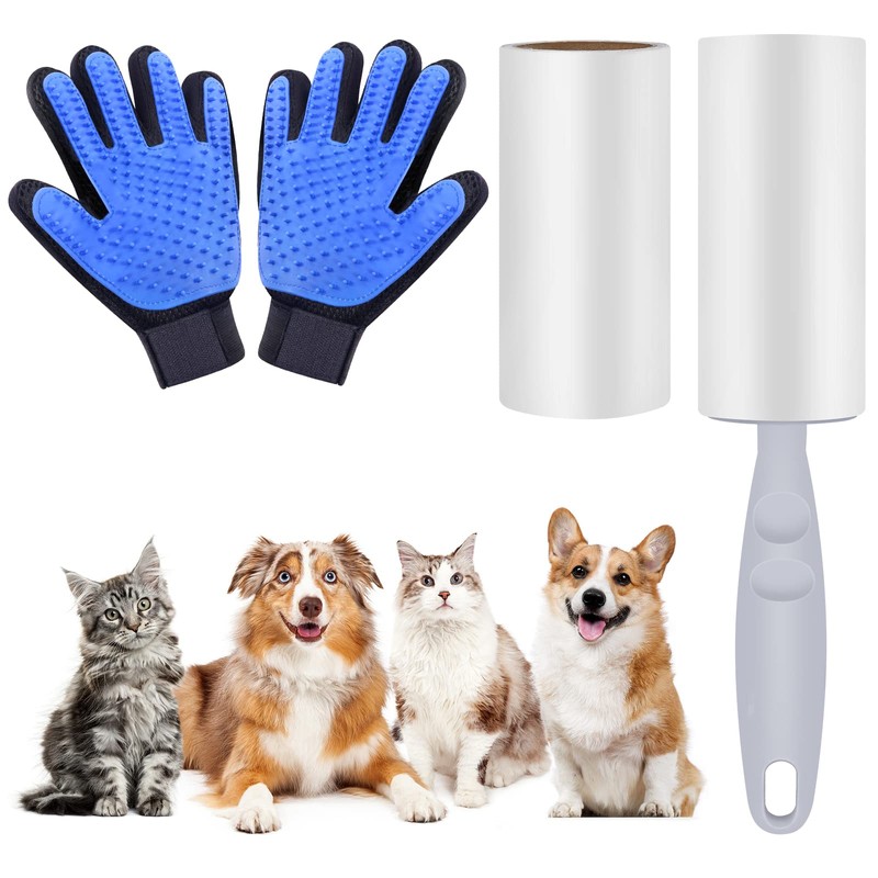 flintronic Fellpflege-Handschuh Katze mit 120 Blätter Extra Klebrig Fusselrolle für Kleidung Bett und Teppich, Fusselroller für Tierhaare die Tierhaarentfernung, Hunde, Hundehaare Staub & Fussel