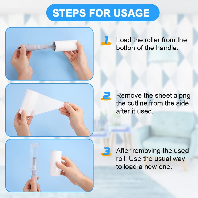 -Einfach zu bedienen: Rollen Sie während des Gebrauchs vorsichtig ab, es haftet Haare und Schmutz sehr gut am Aufkleber, dann müssen Sie den Aufkleber nur noch abziehen.