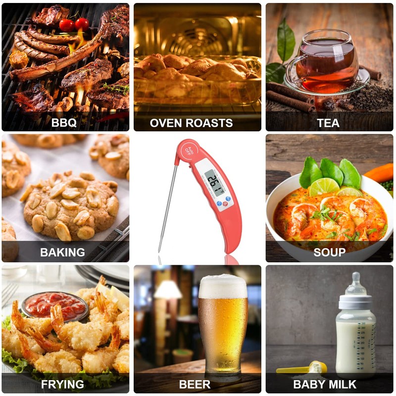 With Flintronic Digital Cooking Thermometer, you can monitor internal temperature of food, ensuring that it is cooked to completion. Just insert the probe into the thickest part of the meat, and the food thermometer will display a reading within five seconds. Afterwards, wash the digital bbq thermometer with hot, soapy water after each insertion to prevent cross-contamination.