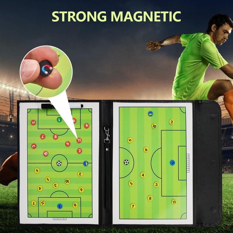 - ⚽【High Quality】 The magnetic tactical board cover is made of high-quality PU leather. The smooth flat surface is easy to write and wipe. The magnetic chess pieces can be firmly adsorbed on a flat surface. It makes it convenient for coaches and players to explain.