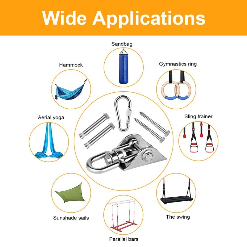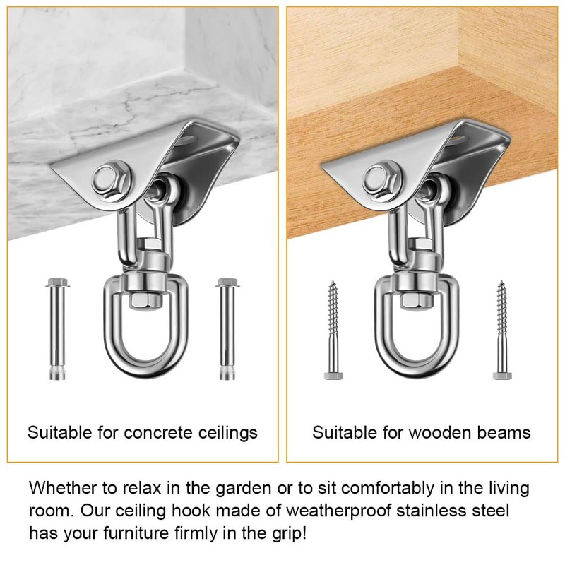 - WIDE RANGE OF USES: suitable for many occasions. Not only suitable for indoors, but also for outdoors. It can be fixed to the ceiling or to wooden beams. Also the best attachment for hanging straps and resistance trainers, hammock swing sets, Olympic rings, battle ropes, yoga swings, boxing equipment.