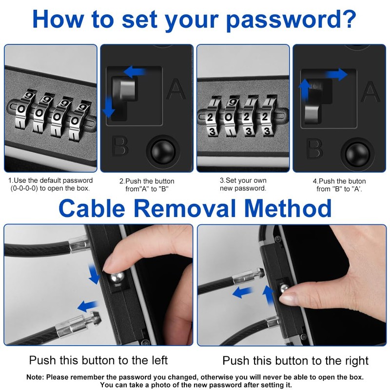 - 【High security】This lock box adopts a 4-digit password design and provides up to 10,000 personalized password combinations. Compared with a safe with a 3-digit password, its security is significantly improved. Please remember the password you set. The factory preset password is 0-0-0-0, and you can easily change it to your own password according to the included guide manual