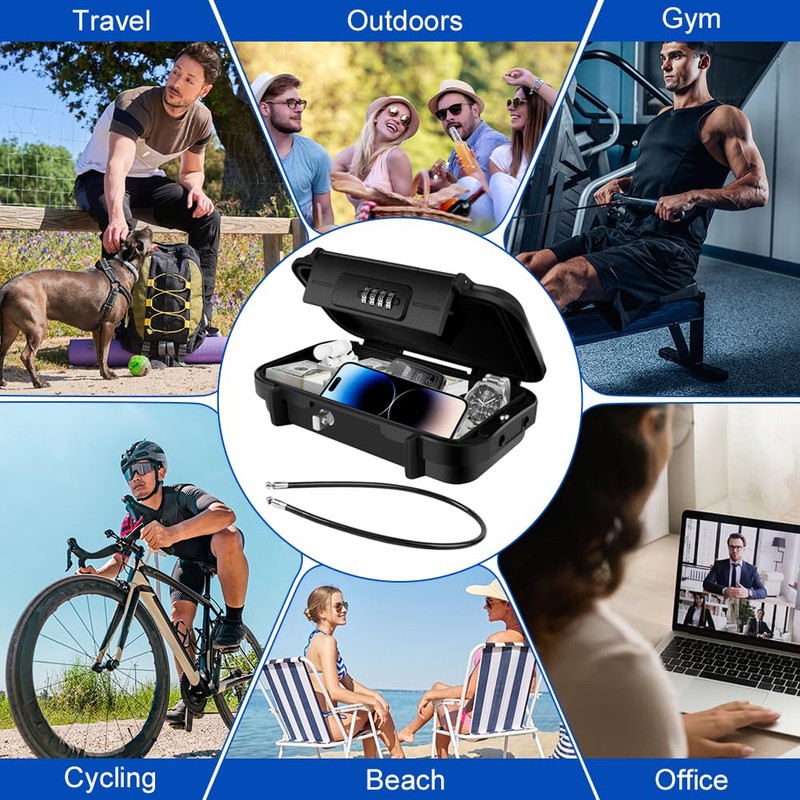 Equipped with a detachable sturdy steel cable, you can hang it anywhere without worrying about the items being unattended. It is suitable for swimming pools, homes, hotel rooms, offices, dormitories, camping or beach trips.