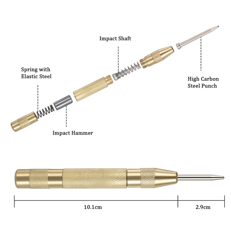 - 🔧【AUTOMATIC CENTER PUNCH】: The automatic center punch provide an automatic, high-impact, spring-loaded strike to the cap; 2 flute spiral design provide longer life and better chip removal.
