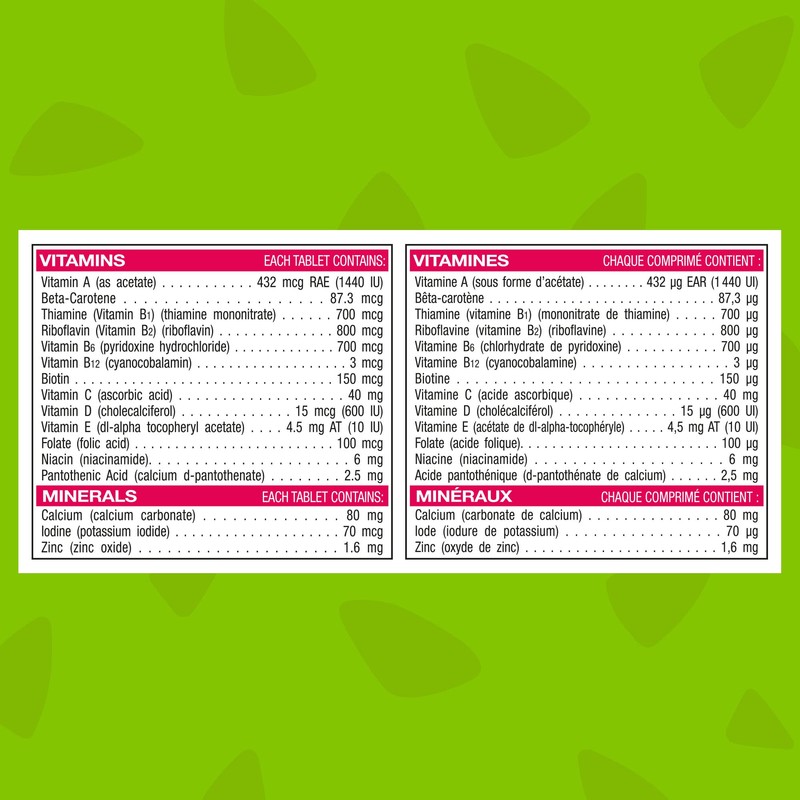 - Great tasting fruit flavours, aspartame-free and easy-to-chew children's multivitamin in fun character shapes