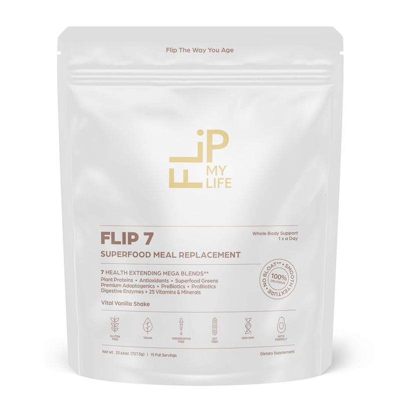 Flip My Life, Flip 7 Natural SuperFood, Plant-Based Protein, Complete Meal Replacement to Support Healthy Gut, 7 Mega Nutrient Rich Blends all in one to AGE BETTER - Vanilla