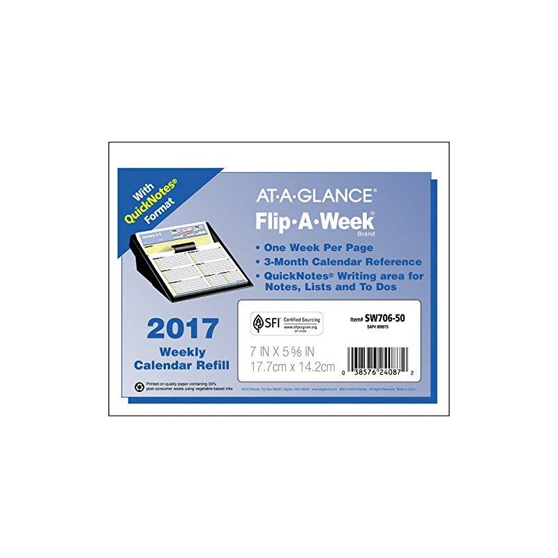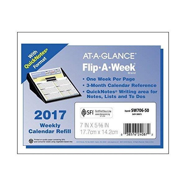 Flip-A-Week Desk Calendar Refill with QuickNotes, 5 5/8 x 7, White, 2016