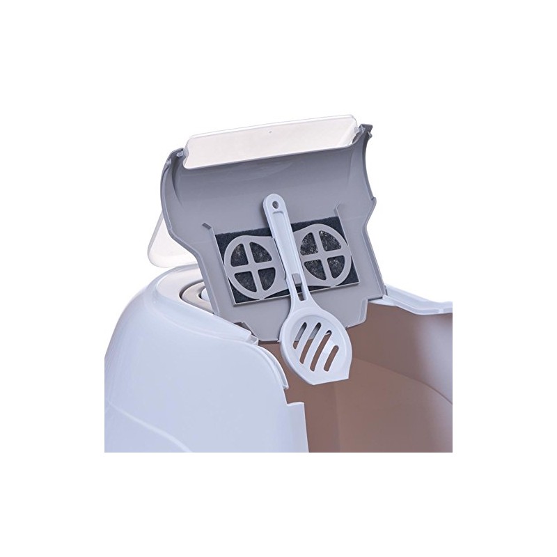 - White litter scoop and filter integrated in the lid; swing door can be removed if required.