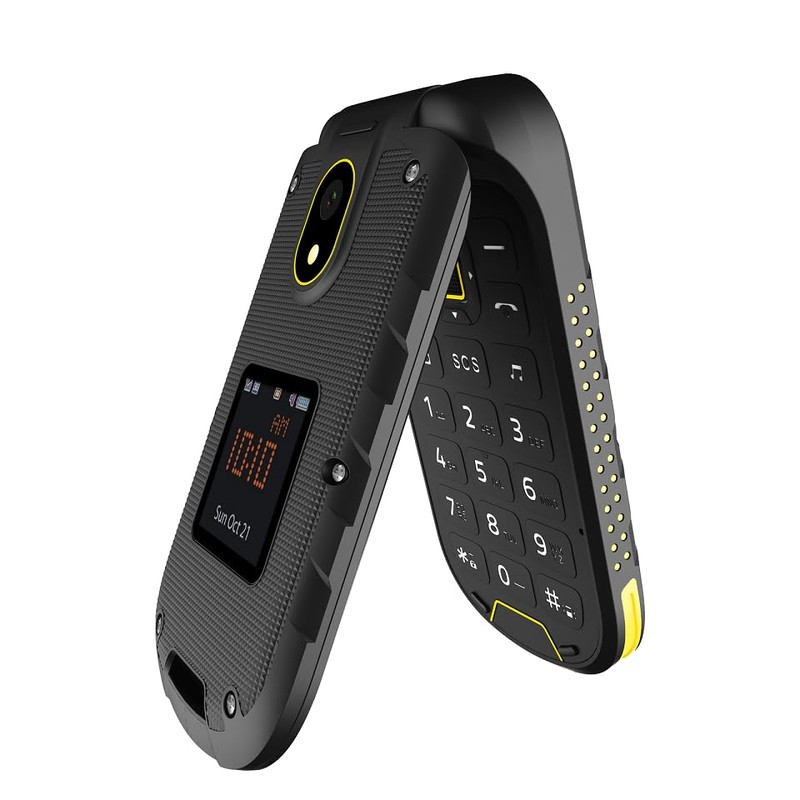 Flip Phone Folding Mobile Phone Hammer DIG LTE 4G Robust, 2 Screens, Simlock-Free, Dual SIM, No Contract, 1200 mAh, 4G/LTE, Waterproof IP68