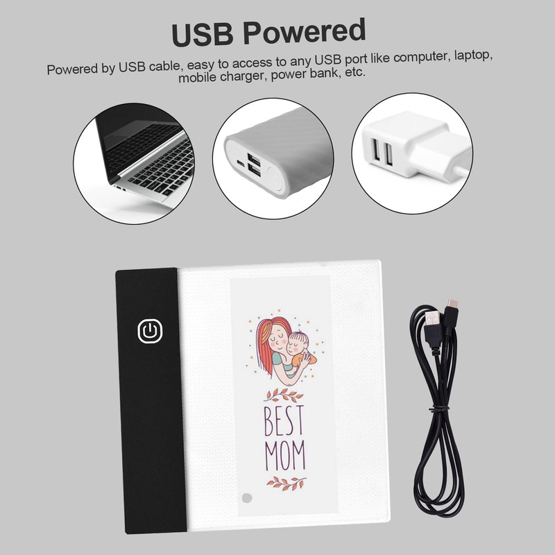 【USB Powered】: The tracing board is powered by USB cable, easy to access to any USB port like computer, laptop, mobile charger, power bank, etc, very convenient to use.