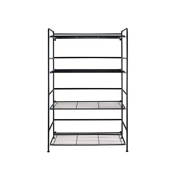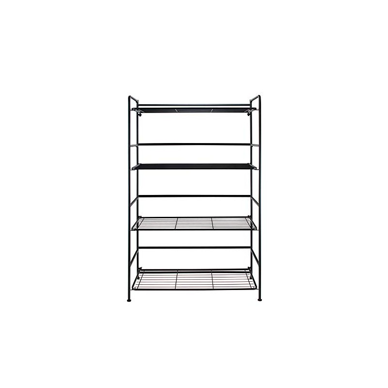 Flipshelf Folding Metal Bookcase-Small Space Solution-No Assembly-Home, Kitchen, Bathroom and Office Black, 4 Shelves, Wide