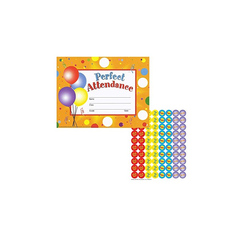 Flipside Products Perfect Attendance Certificates and Reward Stickers, Recognition, Award Students, Incentive, 8.5" x 11", 30 Certificates/160 Stickers Per Pack, 5 Packs