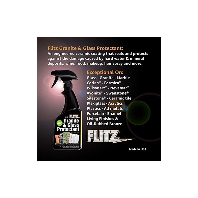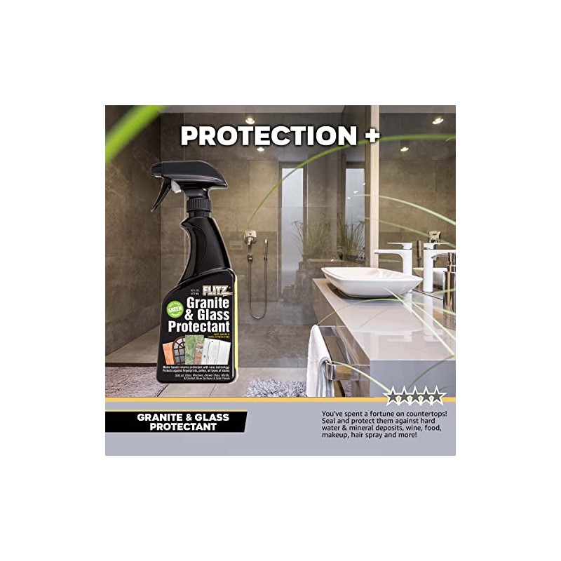 Flitz Granite Glass Cleaner + Sealer, Safe on Food, Powerful Carnauba Wax Formula to Clean, Polish + Protect Kitchen and Bathroom Surfaces, 16 oz