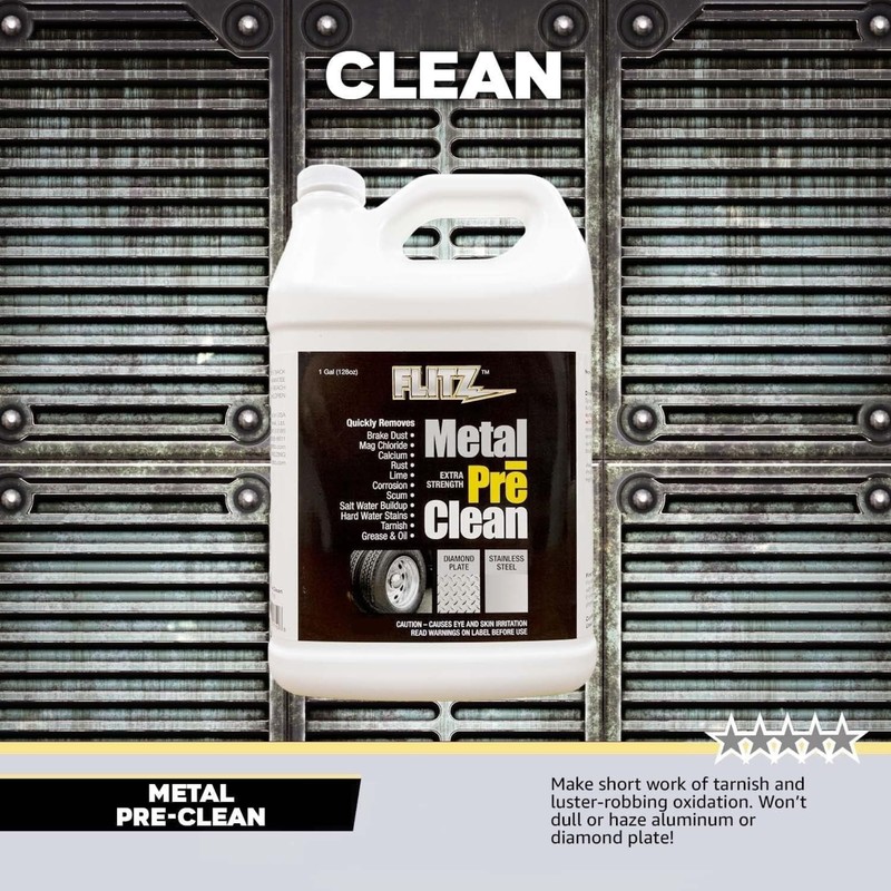 Flitz Metal Pre-Clean - 1 Gallon of USA-Made Stainless Steel Cleaner - Works on Aluminum, Brass, Copper, & More - Tarnish, Rust Remover for Metals - Non-Abrasive Aluminum Deoxidizer (1 Pack)