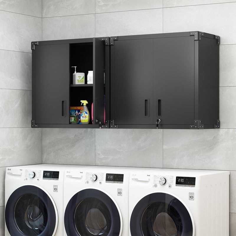 FLIXELIO Garage Storage Cabinet Wall Cabinet with 2 Doors,Lockable Black Tool Cabinets Wall Mounted with Adjustale Shelves,Heavy Duty Hanging Cabinets for Warehouse Kitchen Laundry,Assembly Required
