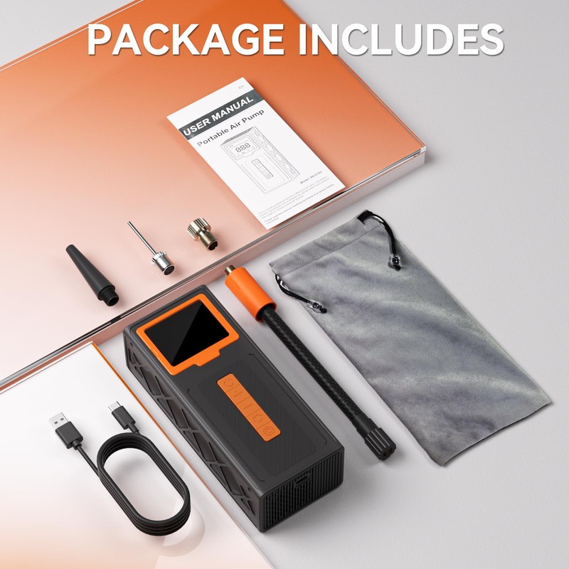 - 【5000mAh Battery & Type-C Fast Charging】Powered by a 5000mAh rechargeable battery, this cordless air compressor supports Type-C fast charging and provides long-lasting performance for outdoor adventures.