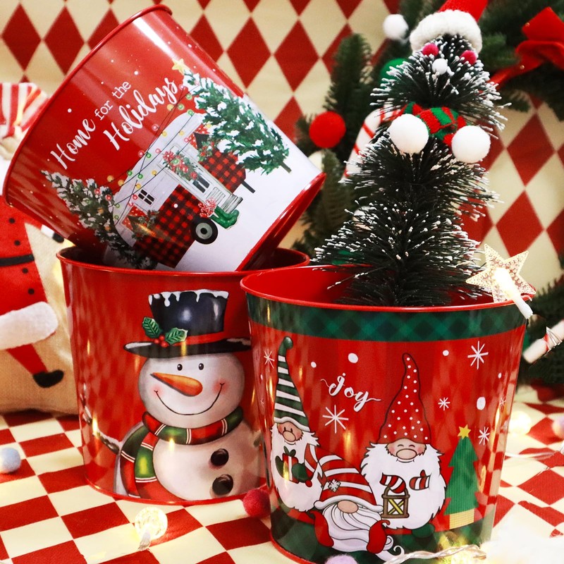 • Rich To Use: You can use the Christmas bucket table decoration pail to decorate your living room, yard or other areas. You can also use small buckets to hold snacks, candy, beer and cutlery to add to the festive atmosphere.