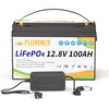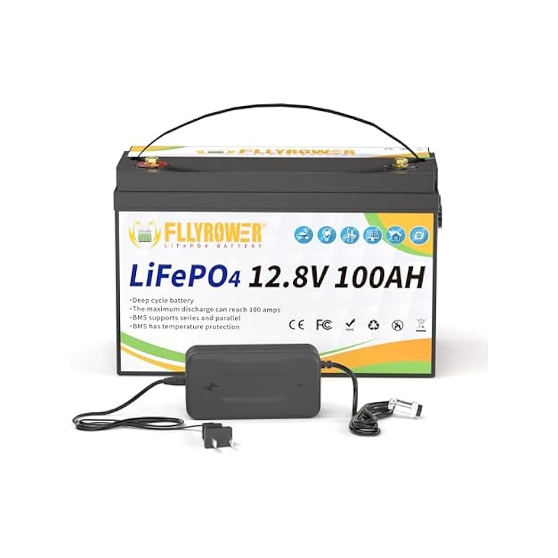 FLLYROWER 12V Lithium Battery 100AH With BMS and 16500 Deep Cycles 12V 100AH Lifepo4 Battery Grade A Cells for Marine Trolling Motor RV camping Solar Golf Cart Off-Grid