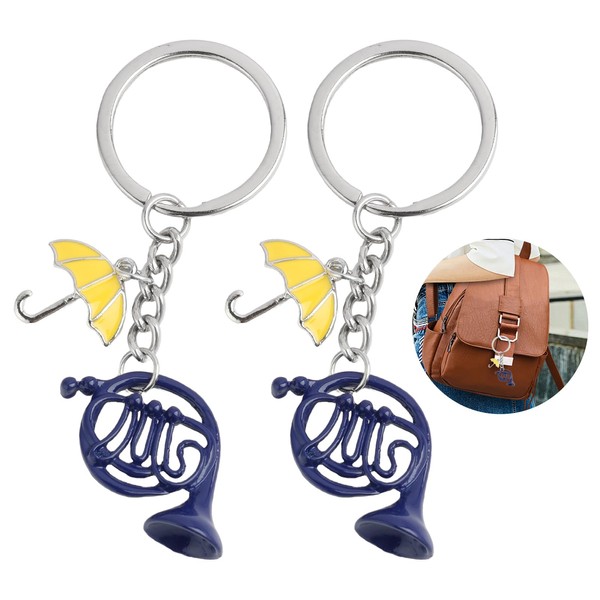 Fllyvly Set of 2 French Horn Keyrings Inspired by How I Met Your Mother, Blue Horn and Yellow Umbrella Pendant, Stainless Steel Key Ring, Gift for Series Fans Key Ring, Blue, Silvery, M