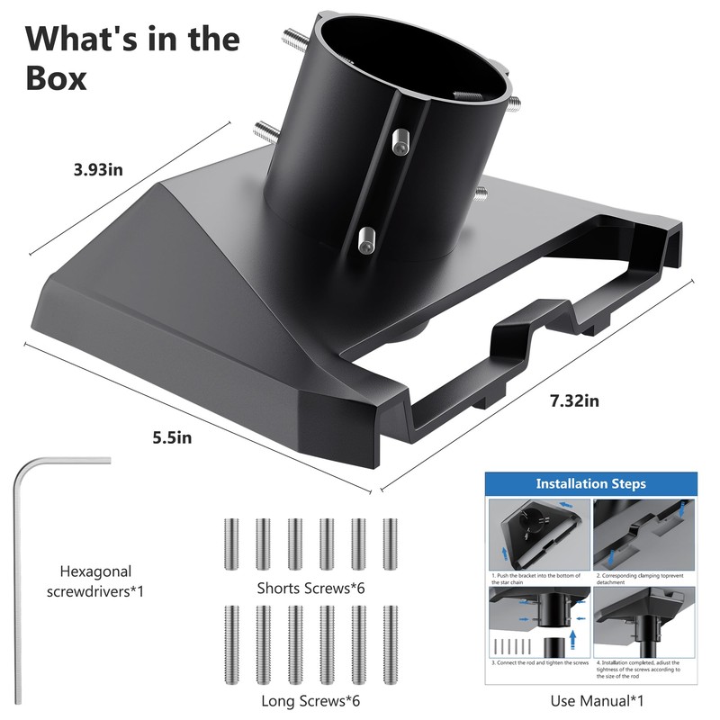 - High Quality Material: Crafted from weather-resistant aluminum alloy, corrosion-resistant and not easy to rust in long-term use. The starlink mounting kit can ensure a sturdy and enduring foundation for your Starlink, capable of withstanding various environmental conditions.