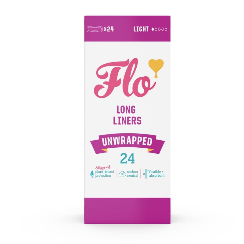 Flo Organic Bamboo Leakproof, Highly Absorbent Long Panty Liners - Unwrapped - Biodegradable & Cruelty, Plastic & Vegan Free - 24 Pack