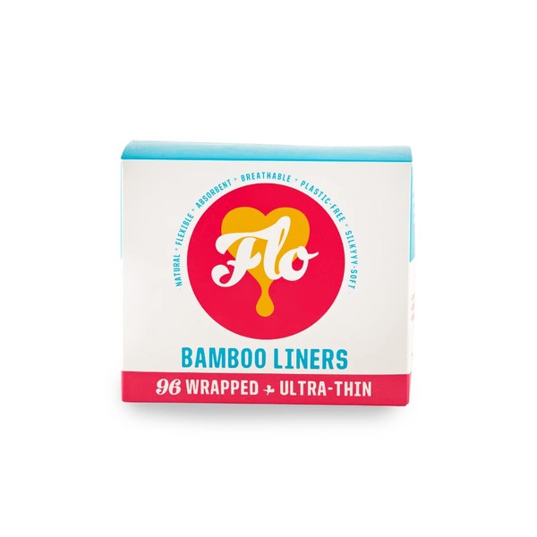 Flo Organic Bamboo Leakproof, Highly Absorbent Slim Panty Liners - Individually Wrapped - Biodegradable & Cruelty, Plastic & Vegan Free - 96 Mega Pack