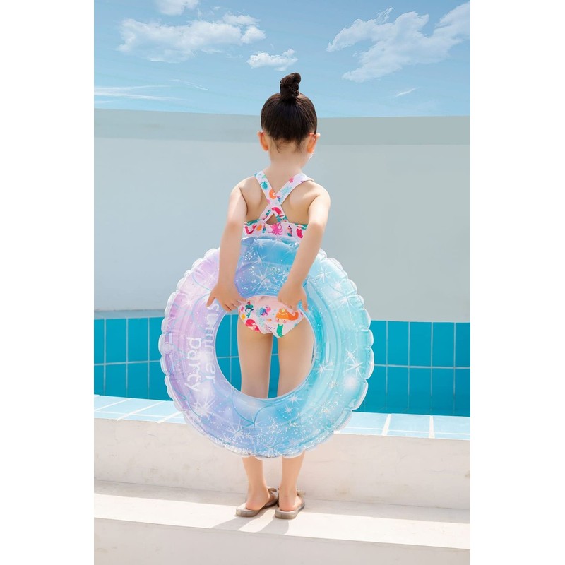 - This is a sparkly and cute O-ring float. This is an O-shaped type that can be used by placing your body in the hole or riding it on the top. The cute starry sky design is very eye-catching and perfect for swimming in the ocean or pool on summer days