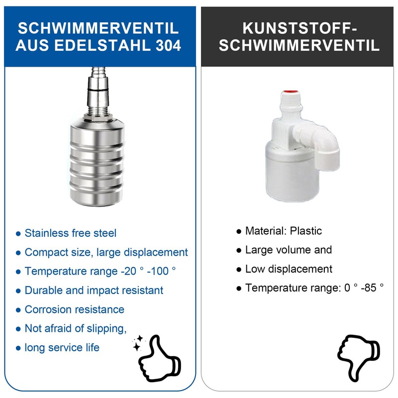 - Compact and Efficient: Designed to be significantly smaller than traditional float ball valves. The water valve provides both water flow control and space saving.