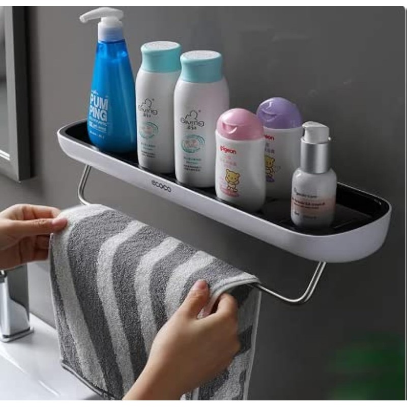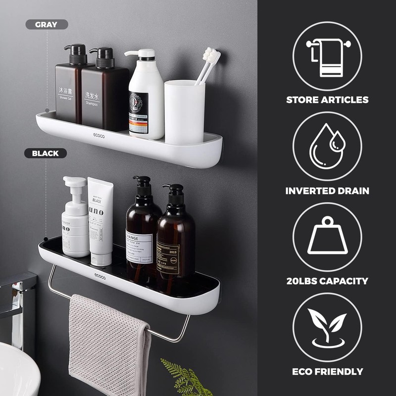 Floating Bathroom Organizer - Wall Mounted Shower Caddy Shelf - with Towel Rail - Extra Strong Self Adhesive - No Drilling - Easy Drainage - Rustproof. (White/Black)