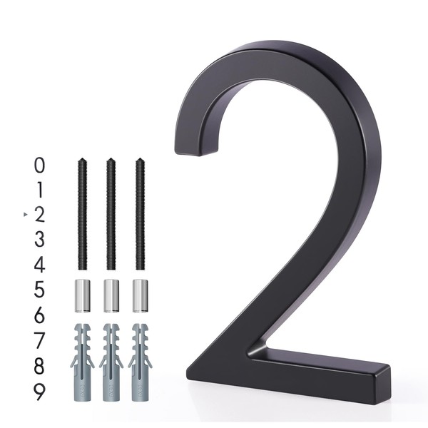Floating House Number 2, YIPLED 6 Inch Modern House Numbers for Home, Mailbox, Street (Black)