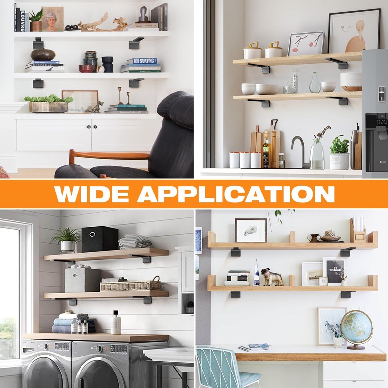 - Hidden Brackests: Our floating shelf brackets can be installed upwards or downwards.Can be installed by a single person.These shelf brackets have no lips and can be truly hidden. The base can be blocked by the plank, creating an amazing floating illusion.