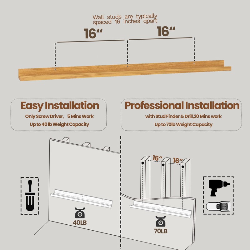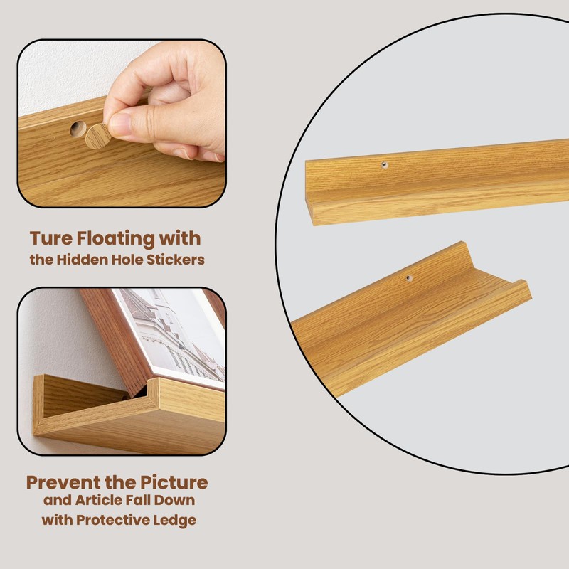 • 【Prevent Items From Falling Design】 The wood shelves has a well designed front lip to prevent your items from slipping or falling down.keep your display item and article safety on the wall mounted shelves .