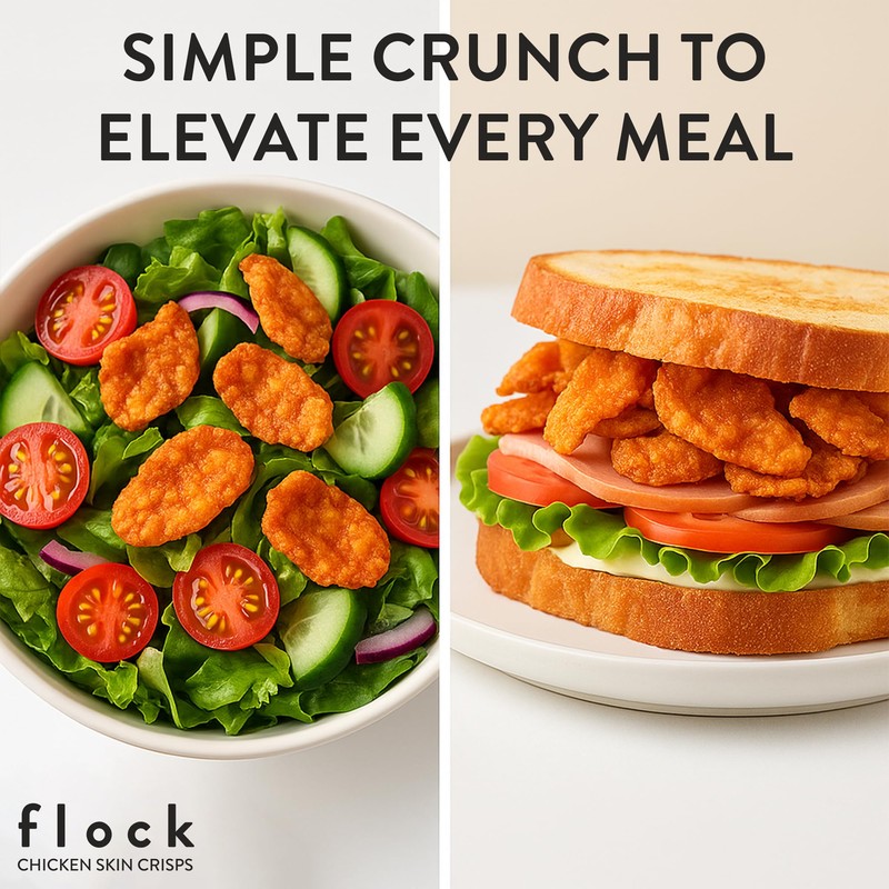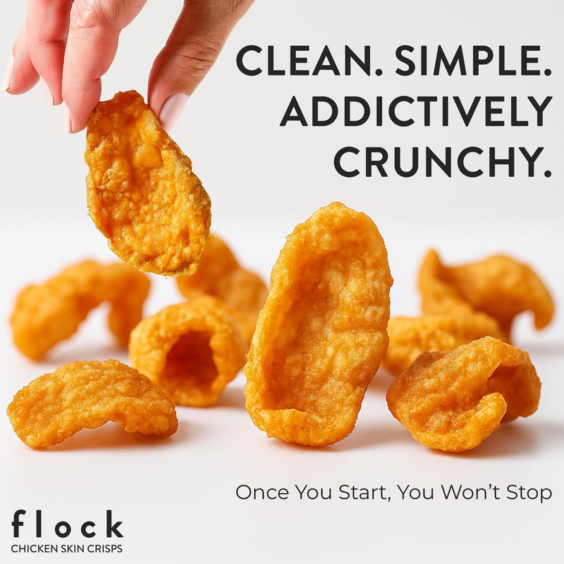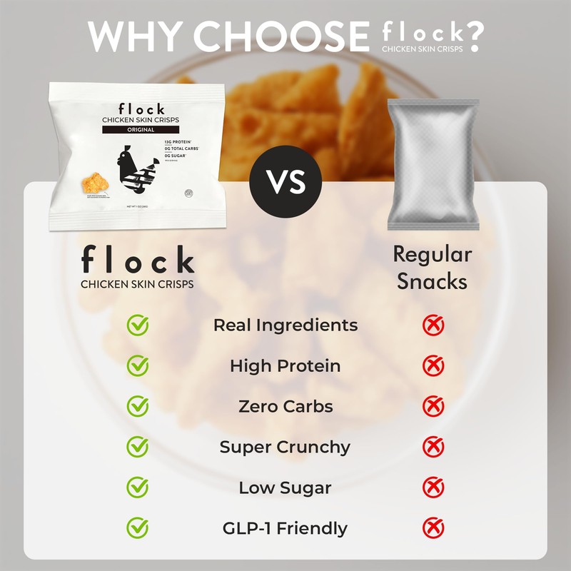 Flock Keto Chicken Skin Chips – Original Flavor, Low Carb, High Protein, Gluten-Free Chicken Crisps, Keto Snack, Low Carb Chips, Protein Crackers, Diet Snacks, 8-Pack (1oz)