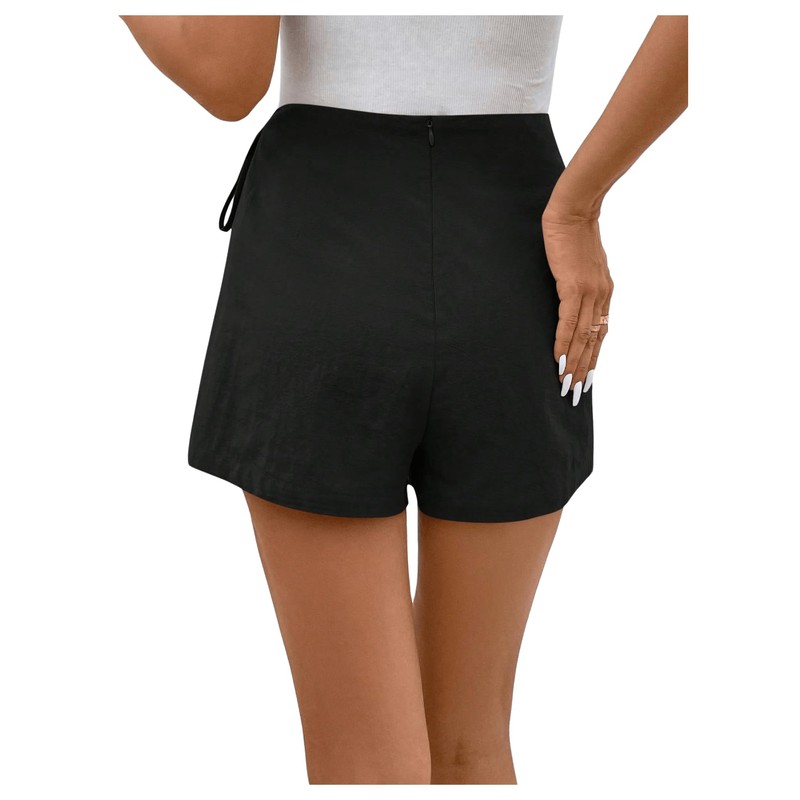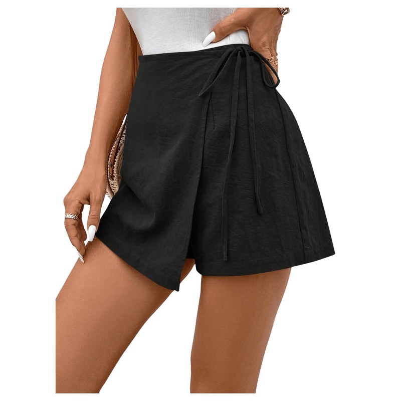 Floerns Women's Solid Wrap Front Linen Skirt Shorts Drawstring Knot Side Skort Shorts Black Medium