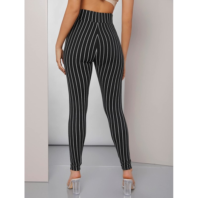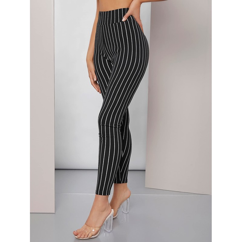 Floerns Women's Striped Print Wide Waistband Cropped Workout Legging Pants Black XL