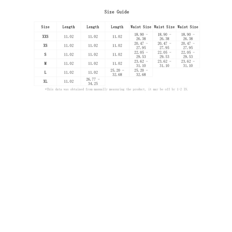 XS:Length:11.0IN,Waist Size:20.5-28.0IN