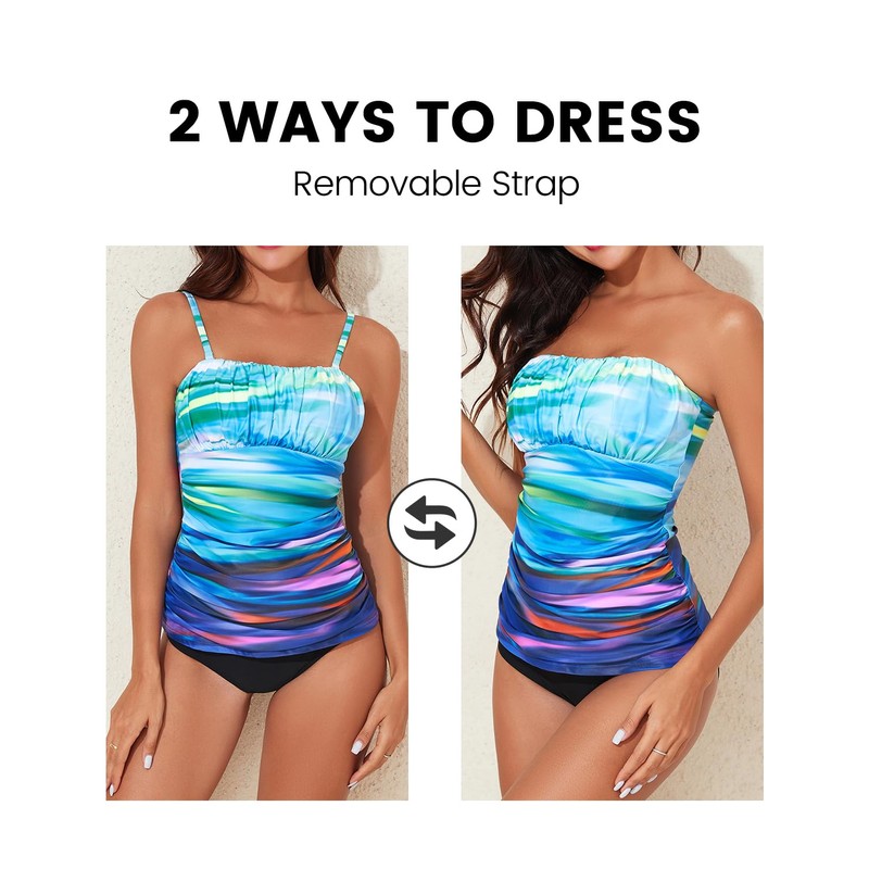 - 【Design】These Tankini Bathing Suits for Women featuring bandeau, ruched tummy control, removable straps and fixed cups. Summer vibes, all year round. Look stylish and feel fantastic on the vocation wearing the Womens Tankini Bathing Suits.