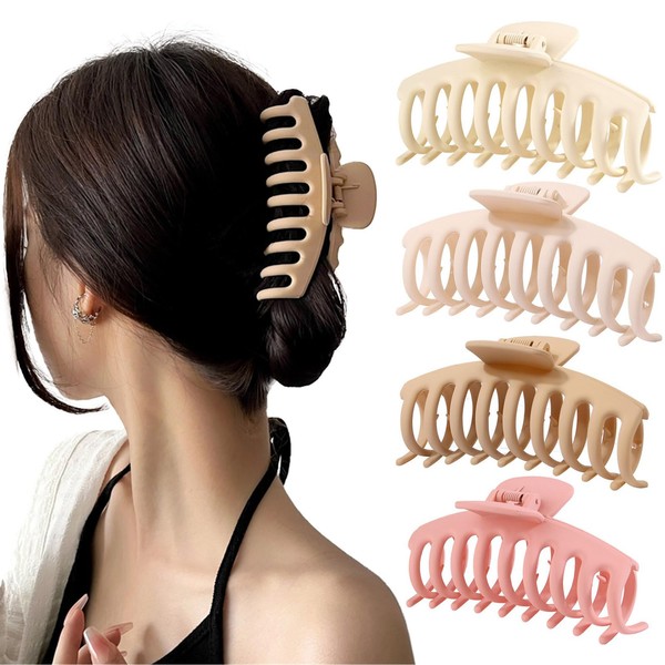 Flomiara 4PCS Large Claw Clip, Extra Large Claw Clips for Thick Thin Hair Women Girls, Bone Non-Slip Strong Hold French Matte Long Hair Accessories Set for Styling, Light Cute for Women Girls