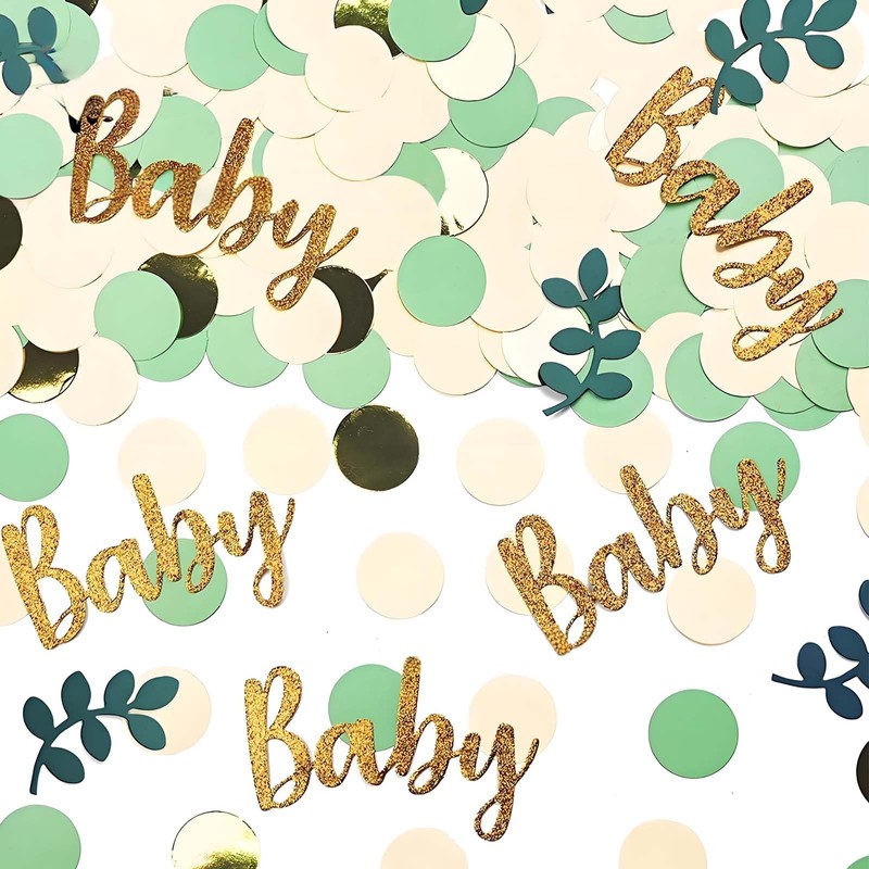 Flomiara BABY Birthday Confetti, Party Decorations Boy or Girls 100Pcs Green Gold Tissue Sprinkle Confetti, Lightweight Reusable, Shower Games Table Decoration Birthday Party Wedding Decoration big