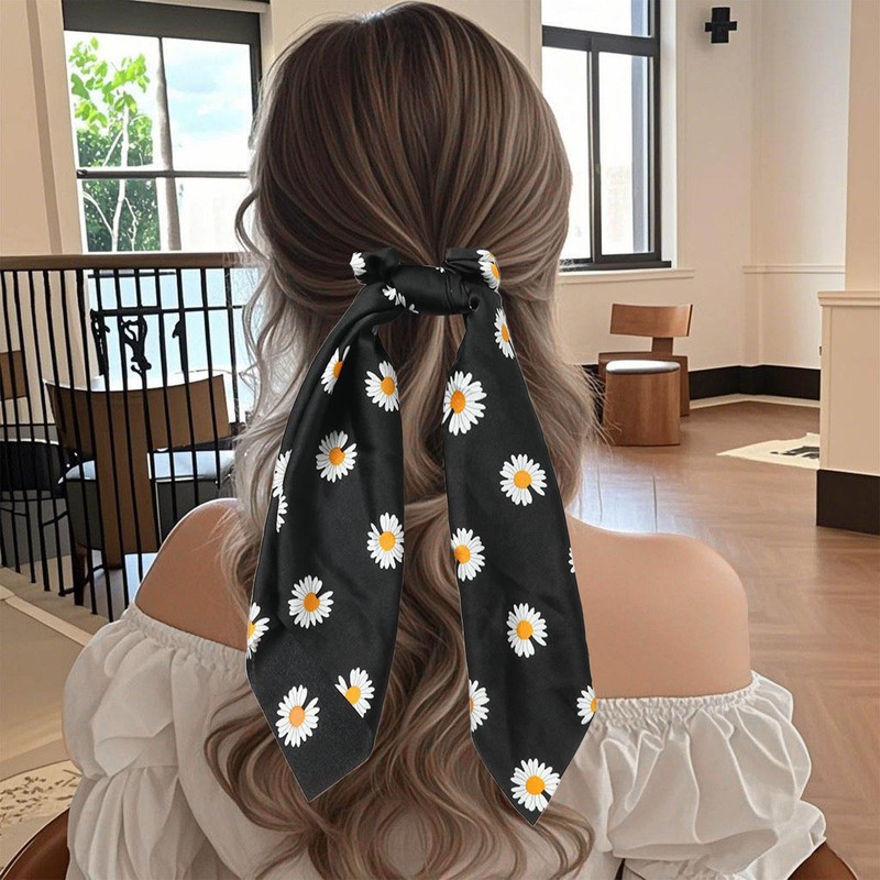 Flomiara Haarschleifen, Haargummis für Damen, Pferdeschwanz-Halter, Zubehör, Blumen, Haarspangen, Friseur, geknotete Schleife, Stoff, langes Haarband für Frauen und Mädchen, Schwarz, 2 Stück